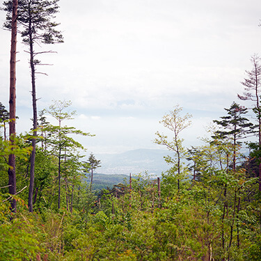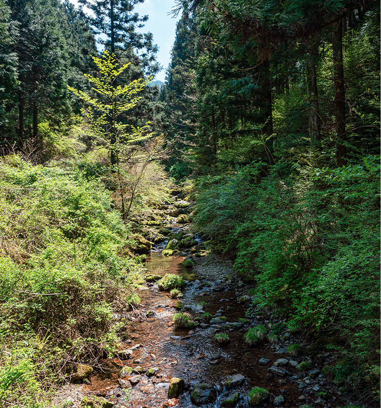 そのために、適切な植林や間伐を行い、十分な光と栄養、安定した土壌を保つことで、幹の太い、何世代にも渡り葉を生い茂らせ続ける木を育てています。