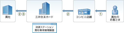 貴社のお客さまにお支払用受付番号を使って、コンビニ店舗でお支払いいただき代金を回収するサービスです。
