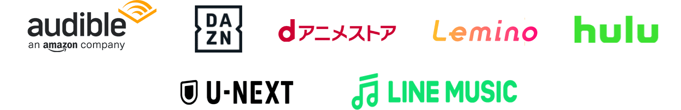 ● Amazonオーディブル ● DAZN※ ● dアニメストア ● Leminoプレミアム ● Hulu ● U-NEXT ● LINE MUSIC