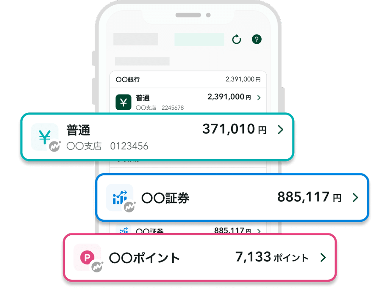 ほかの銀行や証券、クレジットカード等の情報を三井住友銀行アプリの画面上で確認できます。