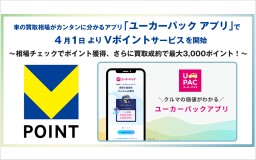 車の買取相場がカンタンに分かるアプリ「ユーカーパック アプリ」で4月1日よりVポイントサービスを開始!