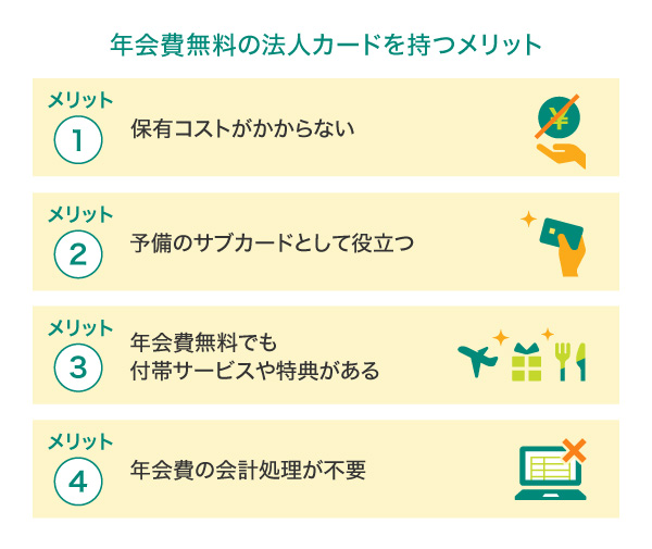 年会費無料の法人カードにはどのようなメリットがあるのか、確認していきましょう。