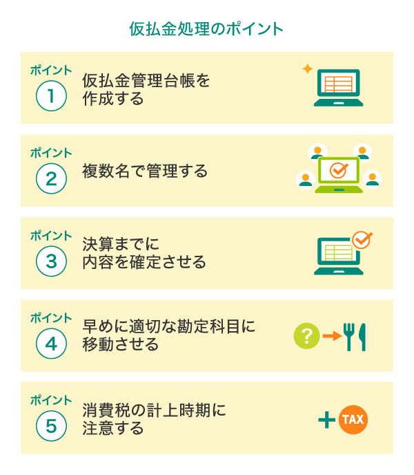 仮払金を用いる場合には、以下のようなポイントを意識し、健全な管理を徹底しましょう。