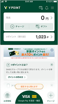 Apple Payや Google ウォレット に設定をすることで、VポイントPayの残高をVisaのタッチ決済・iDマークのあるお店でご利用いただけます。