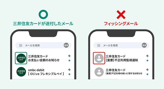 メールのアイコンに公式ブランドロゴ(三井住友カードまたはVpassのロゴ)が表示されている場合、