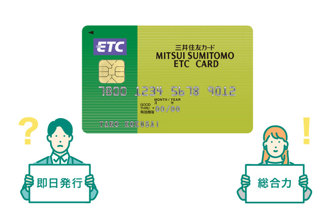 即日発行できるETCカードもごく一部ありますが、発行店舗が限られていたり、すでに対象のクレジットカードを所有していなければならなかったりとハードルが高くなっています。すぐに発行して使いたい場合は利用する方法もありますが、ETCカードはそれぞれに年会費やポイント還元などの特典が異なるため、できれば使う日から逆算して、早めに準備するのがおすすめです。なお、三井住友カードが発行するETCカードは、申し込みから2週間程度でお手元に届きます。