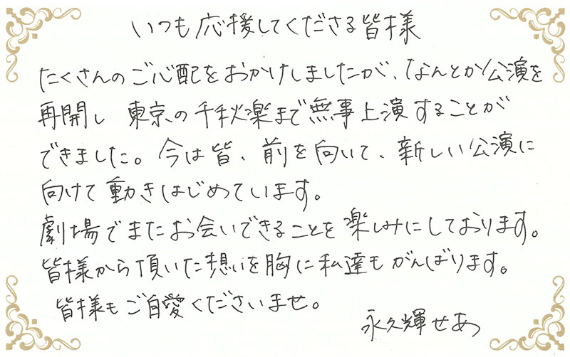 永久輝せあの特別直筆メッセージです。メッセージをクリックすると拡大します。